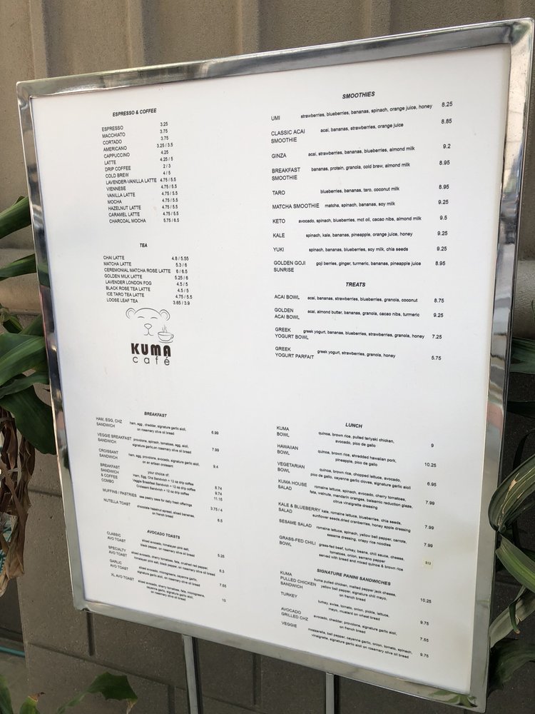 Nestled in the heart of San Diego at 1050 Columbia St, Kuma Café is your go-to spot for a delightful breakfast and brunch experience. This trendy, casual eatery welcomes everyone, from families to busy professionals, with a diverse menu that emphasizes fresh, quality ingredients.